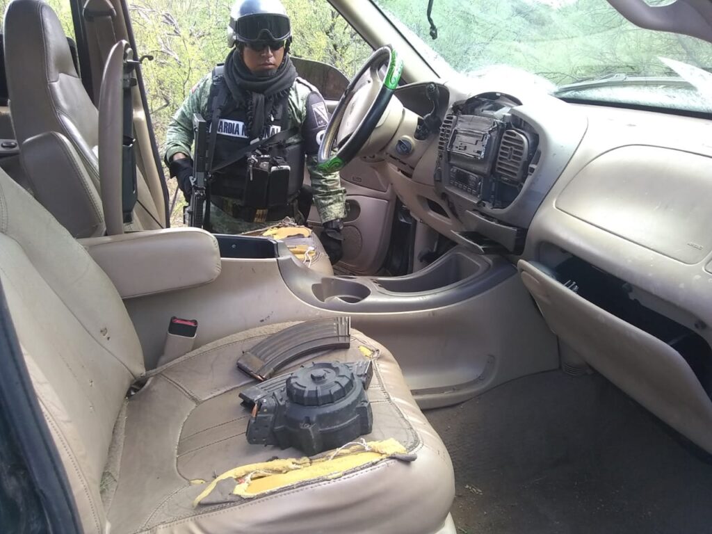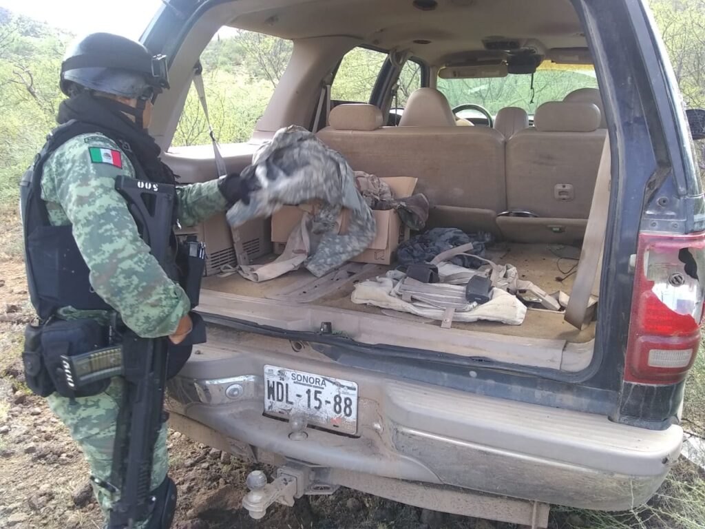 MAGDALENA, SONORA, MX – National Guard elements found an abandoned car containing magazines, cartridges, and tactical equipment on the Magdalena-Cucurpe road.