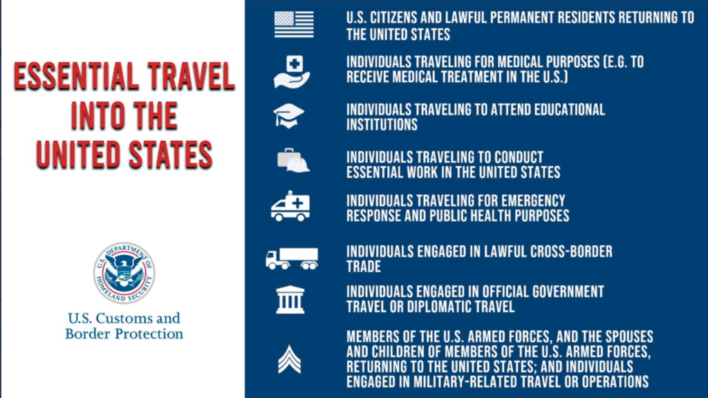 Under the category of essential travel, all US citizens and residents are included. Employees, emergency personnel and workers in the transportation industry as well as those who travel for medical and educational purposes.