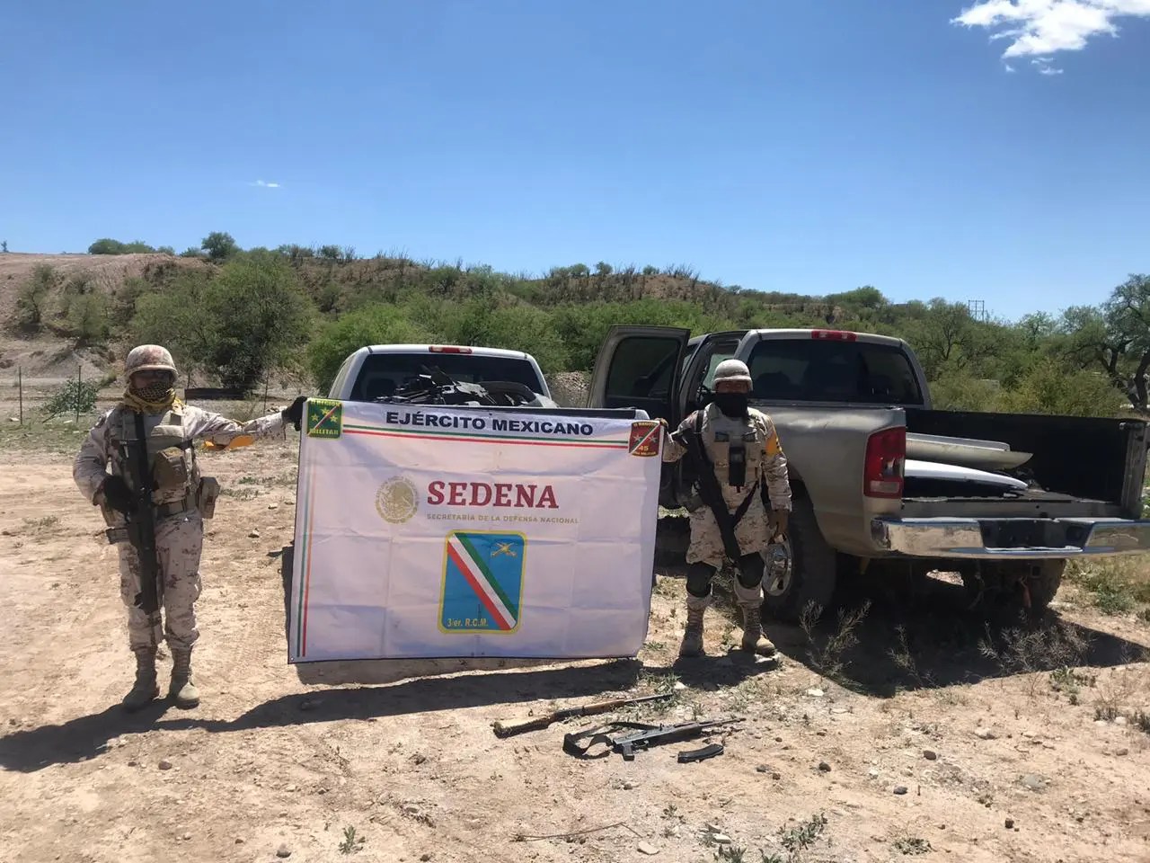 In the case of Ejido Los Janos the military found two vehicles, two rifles and three .223 caliber cartridges. In this second incident, no detainees are reported.