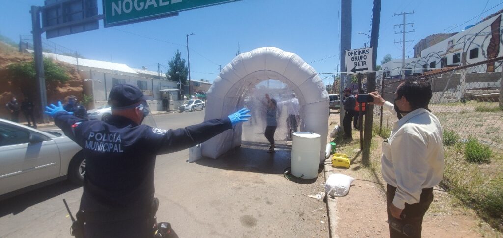 NOGALES, SONORA, MX – Local authorities activated a total of five sanitization tunnels on Thursday as a way to prevent the spread of Covid-19.