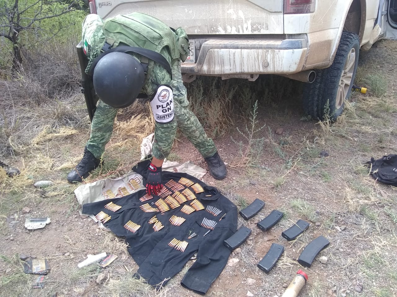 Also on Monday but in Pitiquito, Sonora the National Guard observed two armed civilians at the top of a hill and went after them.