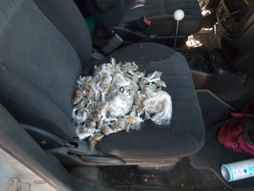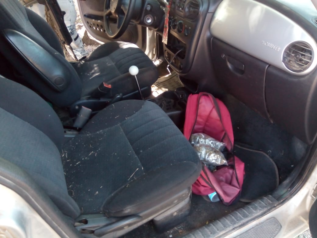Inside the gray Chrysler PT Cruiser, 2004, with CONDEFA license plates MBV-49-798, they found 190 marijuana doses inside a red backpack.
