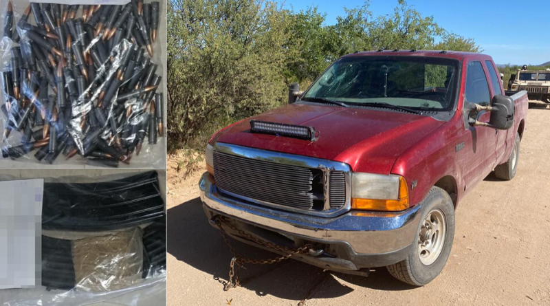 SARIC, SONORA, MX – State Police officers and the Mexican Army found an abandoned pick up last Sunday. Inside the car, they located ammunition and magazines.