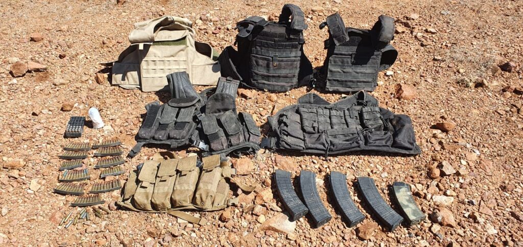 SANTA ANA, SONORA, MX – Tactical equipment, magazines, and cartridges for firearms were found by state and military authorities in operations carried out in the region of Estacion Llano and Cucurpe.
