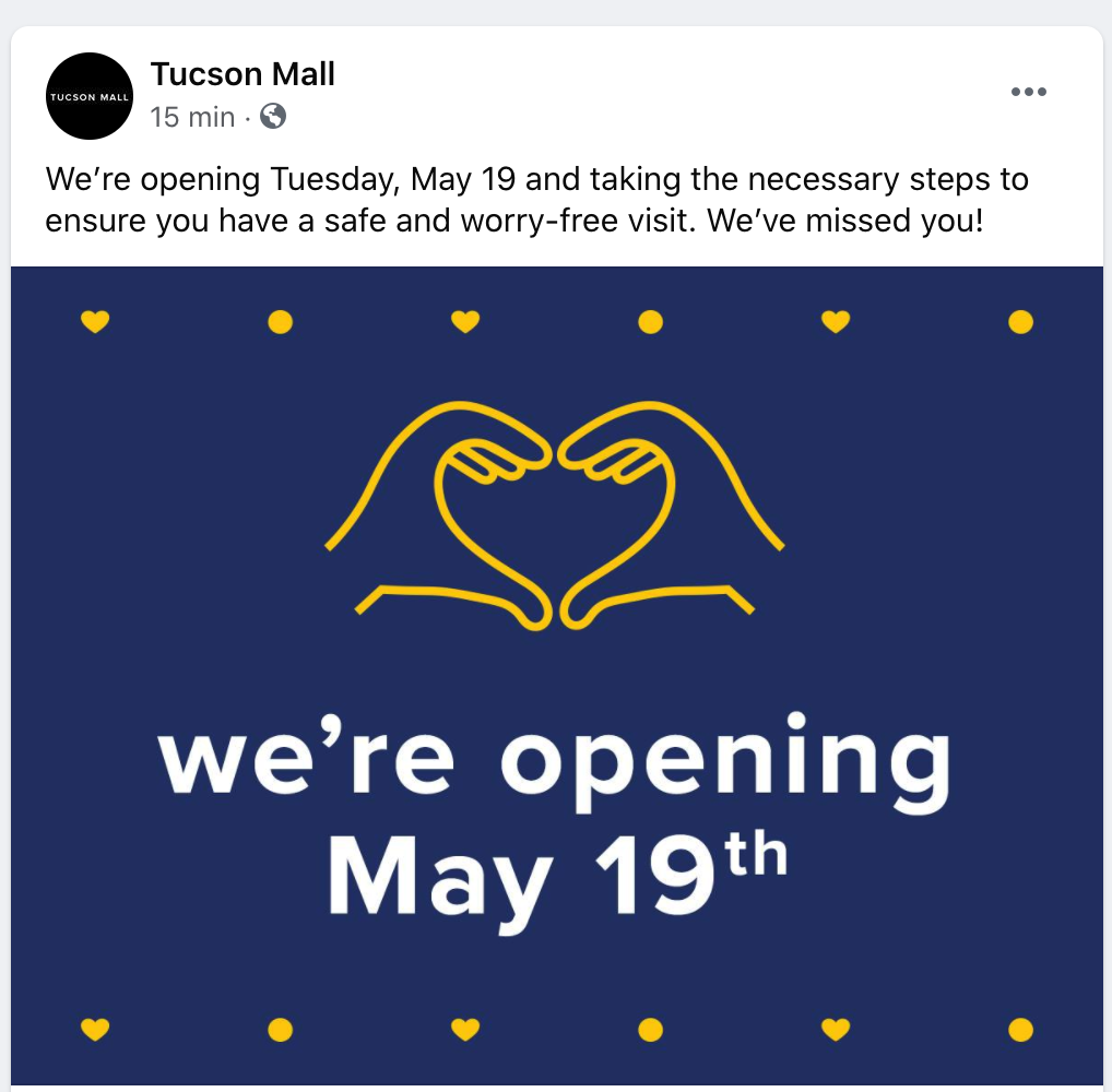 TUCSON, ARIZONA, USA – Tucson Mall, and Park Place Mall in Tucson announce their plans to open to the public beginning Tuesday, May 19.